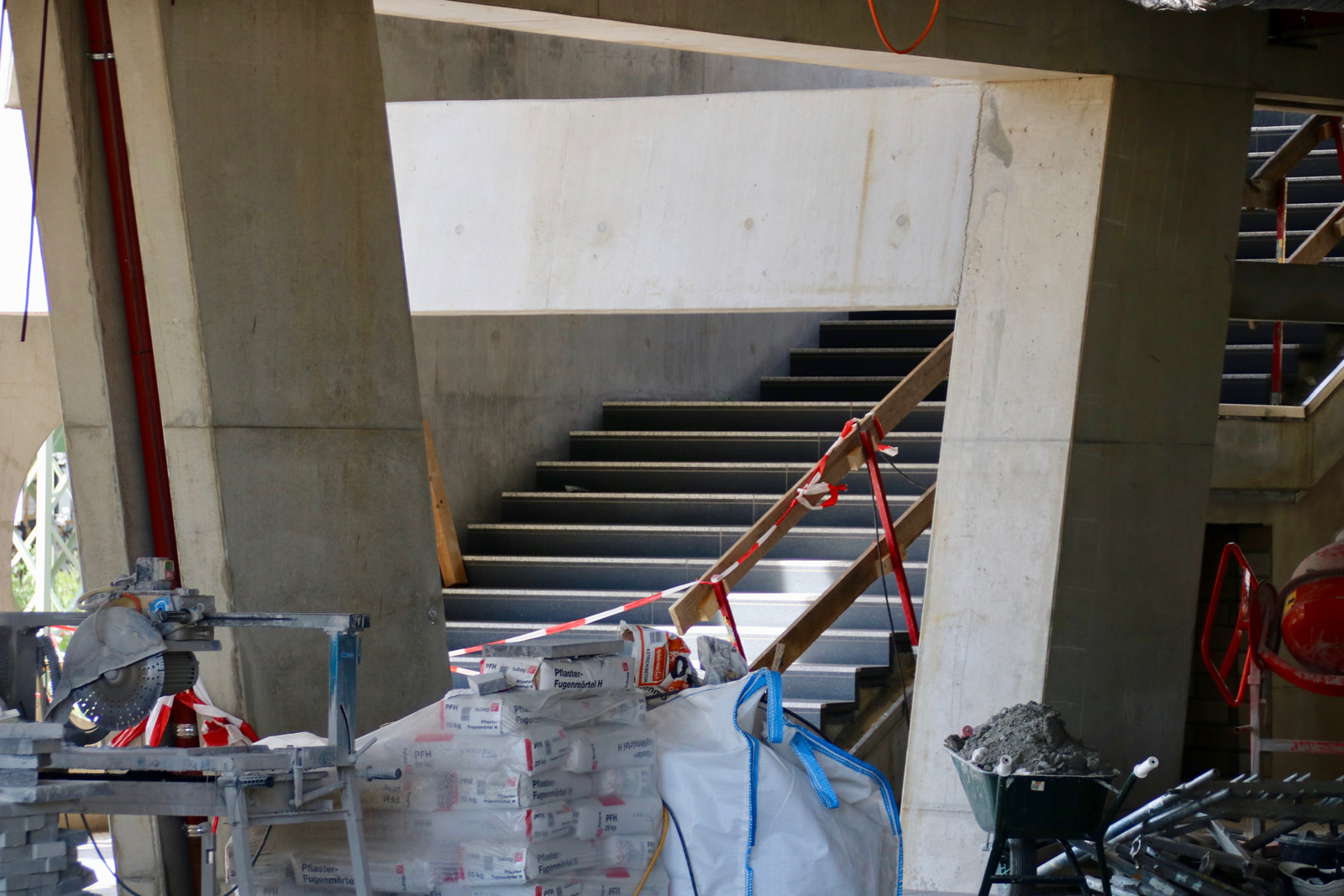Die westliche Treppe vom Bahnsteig B hoch in die Halle hat nun ihren Granitbelag erhalten.