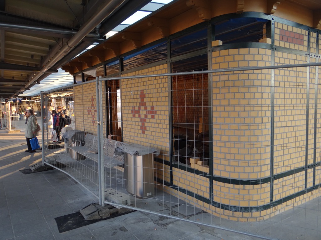 Ein kurzer Abstecher auf den Bahnsteig D, hier fehlen am historischen Dienstgebäude nur noch wenige Steine und natürlich die Fenster sowie die Eingangstür.